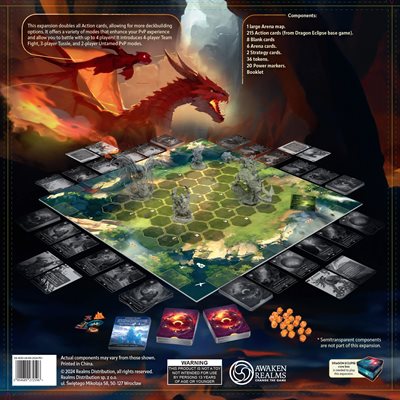 PLUS D'EXTENSIONS POUR LA BOÎTE DE BASE DRAGON ECLIPSE : Untamed Arena enrichit votre expérience Dragon Eclipse en introduisant de nouveaux modes excitants et en doublant le nombre de cartes Action pour des possibilités de construction de deck améliorées.
