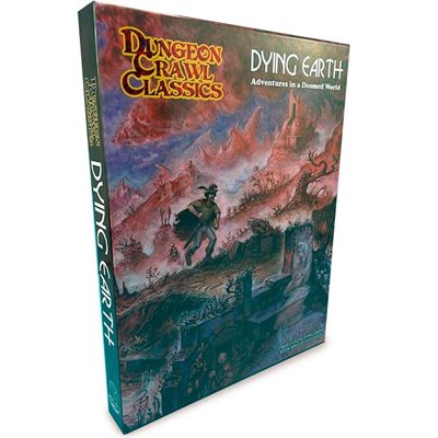 This boxed set contains comprehensive rules options and new material for the Dungeon Crawl Classics RPG explicitly designed to capture the setting of the Dying Earth. Within you will find new classes, creatures, patrons, spells, and more inspired by the Dying Earth stories for use in your DCC RPG game including four new classes for DCC RPG: magician, vat-thing, wayfarer, and witch, as well as new rules for “grudge tokens” to track the resentments that characters accumulate with every minor imprecation they encounter. This set also includes a beautiful map of the world of Dying Earth illustrated by Doug Kovacs. A copy of the Dungeon Crawl Classics rulebook is required to use this boxed set.