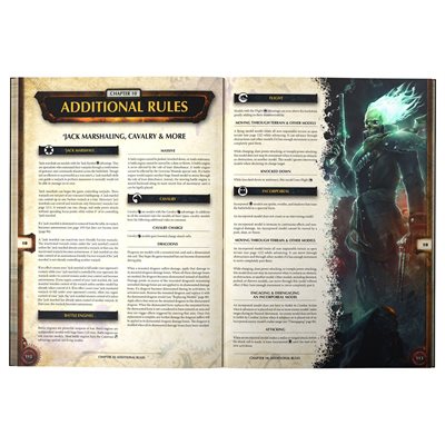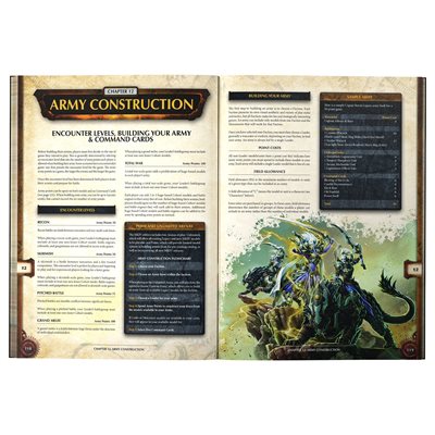 • Votre guide de l’histoire déchirée par la guerre, des divinités, ainsi que des diverses actions et armées d’Immoren et des Royaumes de Fer