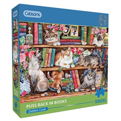 Experience the joy of assembling a puzzle that combines the warmth of cuddly kittens with the allure of a well-stocked bookshelf, in Puss Back in Books!