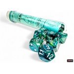 Ce coffret polyédrique complet de 7 dés comprend les dés classiques du JDR : d4, d6, d8, d10, d12, d20, ainsi qu'un dé centile. Il inclut également un dé de laboratoire bonus d6 orné du logo exclusif Chessex, un bécher, disponible uniquement dans ces coffrets de dés de laboratoire en édition limitée.