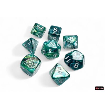 Plongez dans les profondeurs de la mer et des étoiles avec le jeu de dés Neptune/Gris Lustrous . Ce design surnaturel mêle des nuances tourbillonnantes de bleu sarcelle océanique et de vert céleste, rehaussées de l'effet nacré « lustré » signature de Chessex, créant une apparence presque liquide. Les chiffres à l'encre grise offrent un contraste saisissant, apportant une clarté éclatante à la surface marbrée hypnotique.