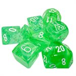 Réduisez votre glu avec le set Nebula Gélatineux/Blanc de la collection Lab Dice de Chessex. Ce set vert translucide et lumineux est animé de volutes blanches tourbillonnantes, imitant l'aspect du danger de donjon préféré de tous : le célèbre cube gélatineux. Et quand les lumières s'éteignent ? Ces dés brillent d'un effet Luminary vert inquiétant , parfait pour les explorations nocturnes dans les donjons.