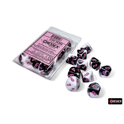 Dice: 10x D10: Gemini: Black-White / Pink (EN)