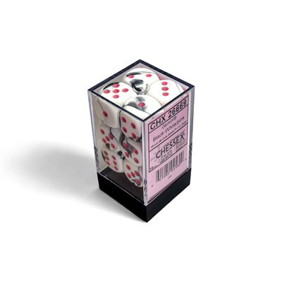 Chaque ensemble contient 12 dés Gemini Noir-Blanc 16 mm à 6 faces avec des points roses, dans une boîte d'exposition 02805 avec couvercle et carré en mousse