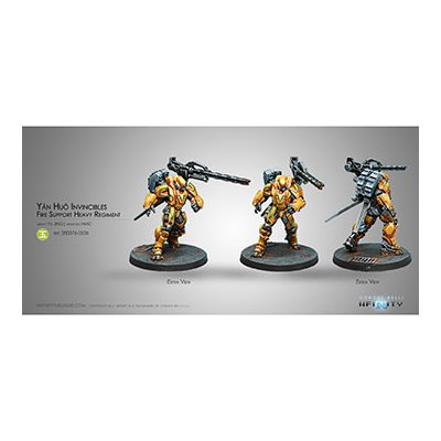 When you need to every single person in the room. The Yu Jing Yan Huo Invincibles, a new troops type for 3rd Edition Infinity packs a proper punch, carrying an obscene amount of fire power for a new style of heavy infantry and really adds to the intimidation factor against your opponents. These Invincible specialists are awesome heavy infantry support troops. Bulky, heavily armed and armoured with a a Hyper-rapid Magnetic Cannon, the Yan Huo are ready to deploy a rain of fire over the enemy.