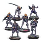 This box includes six miniatures: 1 Riksha Tacbot with Boarding Shotgun, 1 Riksha Tacbot with Red Fury, 1 Dawon Tacbot with Chain Rifle, 1 Dawon Tacbot with Pulzar, 1 Artalis Engineer with MULTI Rifle, and 1 Satrah Hacker. The perfect box to provide Reinforcements to your ALEPH forces when things go wrong.