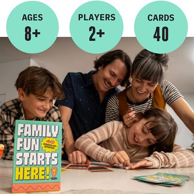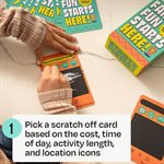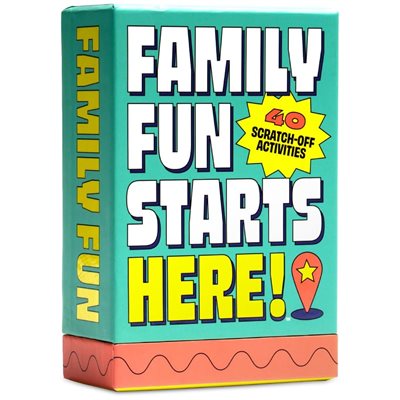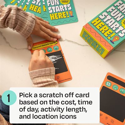 Comment jouer ? Choisissez une carte à gratter, révélez l'activité et lancez-vous ! Les icônes sur la carte donnent des indices sur le coût, la durée de l'activité et le moment de la journée qui convient le mieux pour que vous puissiez choisir l'activité qui vous convient!Jouez n'importe où : Jouez pendant les soirées de jeux en famille, les week-ends à la maison, les vacances en famille, les fêtes, les soirées pyjama, les rendez-vous de jeux, l'été, les anniversaires et bien plus encore. Il y a des options pour le jour, la nuit, à tout moment, hors de la maison, à la maison, et plus encore, donc vous avez un choix pour toute occasion ! Ces activités familiales amusantes sont parfaites pour les enfants, les adolescents, les parents et les grands-parents. C'est un excellent cadeau d'expérience, d'anniversaire ou de Pâques.