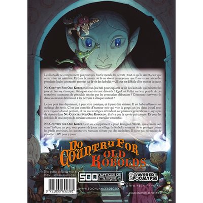 No Country for Old Kobold est un « supplément » pour Dungeon World, qui, comme son nom l’indique un peu, vous permet de jouer un village de Kobolds essayant de se protéger contre les périls extérieurs, les aventuriers humains n’étant pas des moindres. Il n'est pas nécessaire de posséder DW pour y jouer Vous pouvez télécharger une version "redux" (réduite) financée dans la Caravelle. Celle-ci est une version papier, illustrée et complétée.