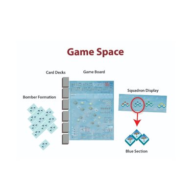 The player’s individual aircraft—each represented by a stickered block—must locate the incoming raid, intercept it, and evade or defeat swarms of escorting German fighters that usually outnumber you and whose pilots have superior experience and tactics. The game simulates the dogfighting and fighter-vs.-bomber action at an individual aircraft level using a card-assisted system that simulates key tactical decision-making without losing the feel of fast-paced aerial combat.