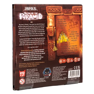Unfold: Victim of the Pyramid is an exciting cooperative adventure that fits into a small envelope. Dive into the other-worldly atmosphere of this tabletop adventure and help Venona go pass all trials that the Great Gods have prepared by solving a variety of puzzles. Will you be able to save Oxiteca and not become a victim of the Pyramid yourself?