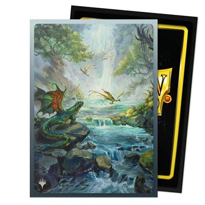 The fetch lands are among the most iconic Magic: The Gathering cards ever made. Now, as part of the Landfall Series, you can get the jaw-dropping showcase version of Misty Rainforest - with dragons! - as Dragon Shield Matte Dual Art Sleeves. The Landfall Series celebrates lands, the gorgeous vistas that serve as the very foundation of Magic: The Gathering. Without lands, no powerful spells would be cast and mighty creatures could not be summoned. The Landfall Series lets you draw the power to protect your cards from the very lands themselves. Dragon Shield Standard Matte Dual Art sleeves are fully opaque and have a black interior that creates a dramatic background for your TCG cards. The matte, textured back allows for a superior shuffle feel. All designs for our Art sleeves are printed directly onto the sleeve and do not peel or split. They are a great fit for our ultra-protective outer sleeves. Each cardboard box contains 100 sleeves and can be used to store 75+ single-sleeved cards, or 65+ double-sleeved cards. Standard size card sleeves for cards sized measuring up to 63x88 mm (2.5" x 3.5"). ​Great for TCGs like Magic: The Gathering! Every box has a label at the top of the box for personalization.