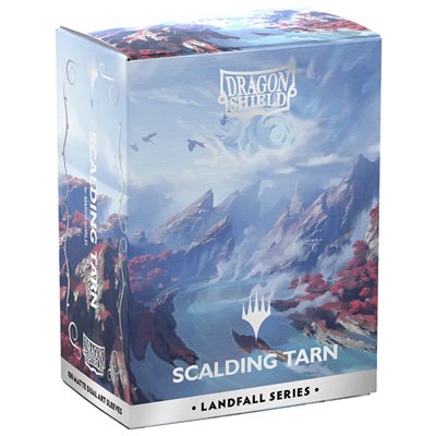 The fetch lands are among the most iconic Magic: The Gathering cards ever made. Now, as part of the Landfall Series, you can get the jaw-dropping showcase version of Scalding Tarn - with dragons! - as Dragon Shield Matte Dual Art Sleeves. The Landfall Series celebrates lands, the gorgeous vistas that serve as the very foundation of Magic: The Gathering. Without lands, no powerful spells would be cast and mighty creatures could not be summoned. The Landfall Series lets you draw the power to protect your cards from the very lands themselves. Dragon Shield Standard Matte Dual Art sleeves are fully opaque and have a black interior that creates a dramatic background for your TCG cards. The matte, textured back allows for a superior shuffle feel. All designs for our Art sleeves are printed directly onto the sleeve and do not peel or split. They are a great fit for our ultra-protective outer sleeves. Each cardboard box contains 100 sleeves and can be used to store 75+ single-sleeved cards, or 65+ double-sleeved cards. Standard size card sleeves for cards sized measuring up to 63x88 mm (2.5" x 3.5"). ​Great for TCGs like Magic: The Gathering! Every box has a label at the top of the box for personalization.