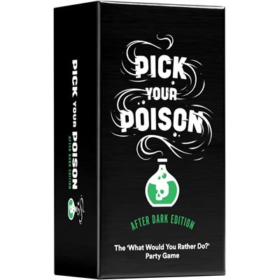 Pick Your Poison After Dark is an adult party game where you anonymously answer “would you rather…” questions that are set up by your friends. When everyone reveals which scenario they would rather do, you’ll find out who agrees with you and who would choose a different Poison.