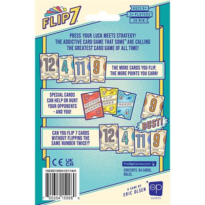 This isn't just any deck of cards… In Flip 7 there's only one 1 card, two 2's, three 3’s, etc. plus a bunch of special cards that can score you extra points, give you a second chance, or freeze you or your opponents in your tracks. Are you the type of player to play it safe and bank points before you bust, or are you going to risk it all and go for the bonus points by flipping over seven in a row? Press your luck meets strategy in this addictive card game that's sure to be the greatest card game you’ve ever played!