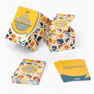 141 OUTRAGEOUS CONVERSATION STARTERS FOR KIDS - Promote creativity and imagination with this deck of outrageous conversation starters for kids. Gone are the days of your typical "what did you do today" conversations. With this deck, you'll learn more about each other, increase communications skills and foster critical thinking and emotional intelligence! Game comes with: 141 Unique Conversation Starters for Kids and Families. 141 off-the-wall conversation starters for your kids! Our 141