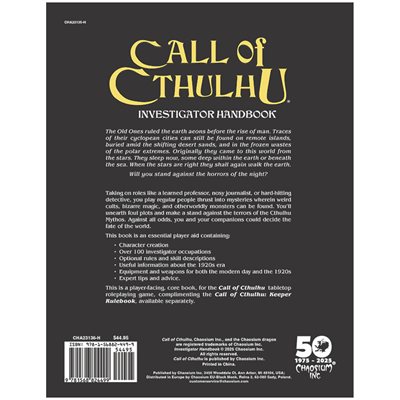 The book contains expanded rules for creating player characters, a wealth of over 100 occupations and skill descriptions, as well as guidance on getting the most from the game. It introduces a range of organizations for your investigator to belong to, detailed information about the classic 1920s setting, and advice for all budding and experienced players alike.