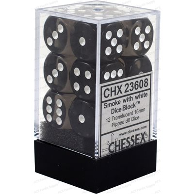 Dice: 12x D6: 16 mm: Translucent: Smoke / White (EN)