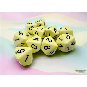 Dice: 10x D10: Opaque Pastel: YellowithBlack (EN) Dice: 10x D10: Opaque Pastel: YellowithBlack (EN) Chessex Code: CHX25262 Connect to View Price