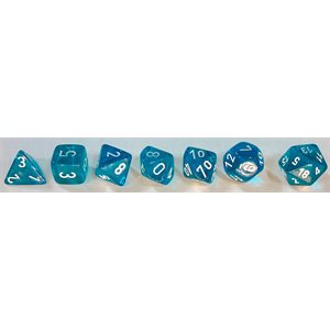 Dice: 7 pc: Translucent: Teal / White (EN) Dice: 7 pc: Translucent: Teal / White (EN) Chessex Code: CHX23085 Connect to View Price