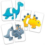 This colorful set of 15 dino themed puzzle cards provides children with an excellent introduction to their favorite dinosaur creature. Each card features a picture of a unique dinosaur. Children will learn to recognize many different dinosaurs by simply matching the correct pieces to complete the puzzle. The puzzles are self-correcting as no two puzzle cuts are the same!