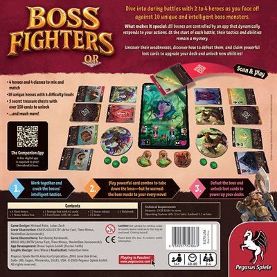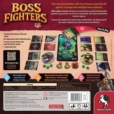 Dive into daring battles with 2 to 4 heroes as you face off against ten unique and intelligent boss monsters! What makes it special: All bosses are controlled by an app that dynamically responds to your actions. At the start of each battle, their tactics and abilities remain a mystery. Uncover their weaknesses, discover how to defeat them, and claim powerful loot cards to upgrade your deck and unlock new abilities!