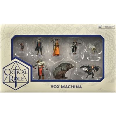 Critical Role: Vox Machina Boxed Set offers high quality painted versions of the band of lovable misfits decked out with some of their most iconic gear. Grog Strongjaw wields his cursed blade, Pike and Scanlan display their divine blessings, and twins Vex'ahlia and Vax'ildan sport their Vestiges of Divergence: the longbow Fenthras and the dagger Whisper. Whether reliving some of Vox Machina’s most epic adventures or bringing some familiar NPCs to your Exandria Campaign, this set has everything you need to bring the world of Critical Role to your table.