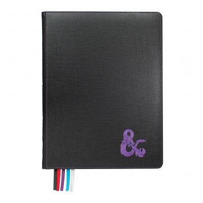 Cast a ward of protection on your treasured D&D source books with the Premium Book Cover for Dungeons & Dragons. The textured leatherette cover features a rigid layer of protection for both the front and back of the book, while remaining flexible at the binding for ease of use. Simply slip the back cover into the back inner pocket and use the front elastic strap to either hold the front cover open, or secure the book closed by pulling it over the back cover. Easily reference important pages marked by 5 attached and color-coded ribbons (black, red, blue, purple, & white). Premium Book Covers pair beautifully with other Ultra PRO premium accessories for Dungeons & Dragons. Each book cover features embroidered labeling on the binding as well as the classic D&D ampersand on the front cover, each complimented by color-matched stitching. Sized for both vintage and current size books, this is the ultimate UPgrade for any party member, DM, or D&D enthusiast