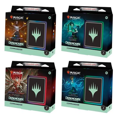 Cast fear into the hearts of your opponents with all 4 Duskmourn: House of Horror Commander Decks—Miracle Worker, Death Toll, Jump Scare!, and Endless Punishment.