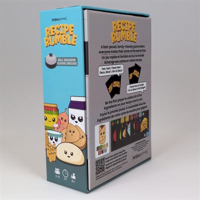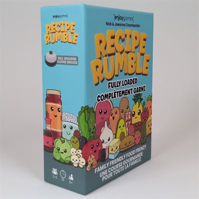 Recipe Rumble - for three to eight players, ages 8 and up. It's a family friendly food frenzy!