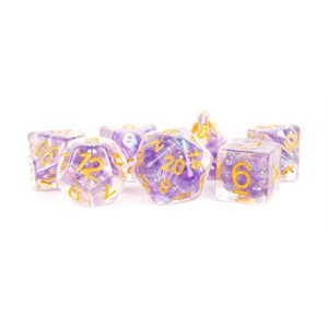 Dice: 7 pc: 16 mm: Resin: Pearl Purple with Gold Numbers (EN)