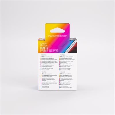 Card-sleeves are an essential requirement to protect your valuable gaming cards. These Prime Sleeves provide a premium protection for standard-sized cards and prevent them from bent corners, scratches or damages by frequent shuffling. Due to their fine, matte back side players will experience a great shuffle feel and don’t to have struggle with slipping deck staples. The sleeves are optimized in size to ensure a professional protection and work perfectly for double-sleeving (sleeve-within-sleeve). One pack contains 100 sleeves, matching also larger deck formats.