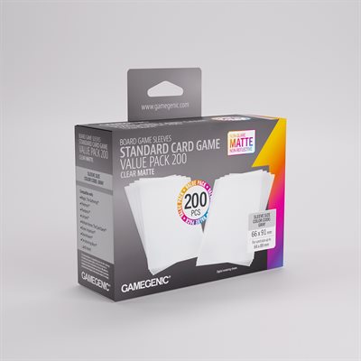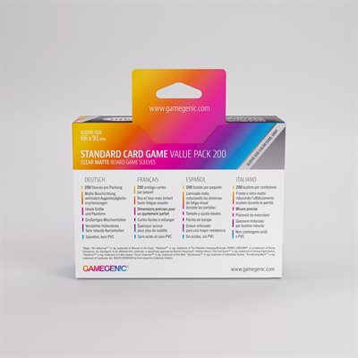 One can never have too many sleeves! – The Matte Standard Card Game Value Pack contains 200 standard-sized Matte Sleeves to protect a large number of gaming cards. This allows professional protection for large TCG decks or board games. These sleeves are made with the same quality standards as all Prime Board Game Sleeves. The extra-clear front and back allow perfect visibility of the sleeved cards and the thickness of 100 microns adds weight and strength.