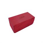 The upper level can be seamlessly slid backward to allow free access to all cards. Small notches at the bottom provide convenient access even to the last card. The compartments are designed to hold all cards of the CATAN® base game and CATAN® 5-6 Player Extension. The cover of the Trading Post is fully removable and can be easily converted into a rigid dice tray. It is made from premium materials such as Nexofyber and soft inner microfiber lining. This protects the stored cards and provides a smooth sound for dice rolling. Strong magnets will keep this box safely closed, even when it is full.