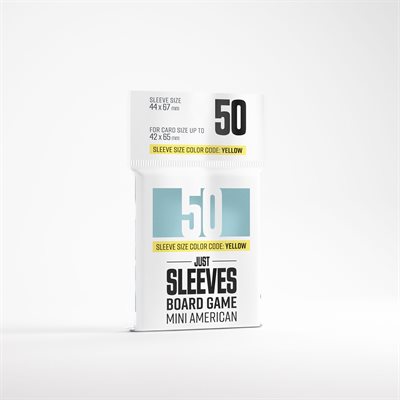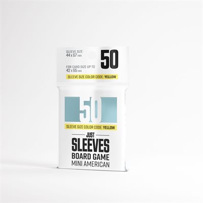 Our answer to entry-level sleeves. Just Sleeves – Mini American-Sized are a cost-effective option designed to protect board game cards.Measuring 46 × 71 mm, these sleeves are perfect for games with Mini American size cards. This size also matches the Gamegenic Prime line of yellow color sleeves.Each pack contains 50 sleeves.