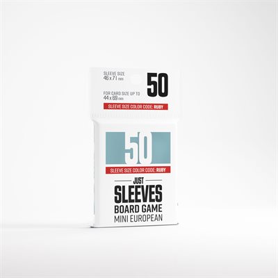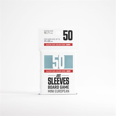 Our answer to entry-level sleeves. Just Sleeves – Mini European-Sized are a cost-effective option designed to protect board game cards.Measuring 44 × 67 mm, these sleeves are ideal for games with Mini European size cards. This size also matches the Gamegenic Prime line of ruby color sleeves.Each pack contains 50 sleeves.