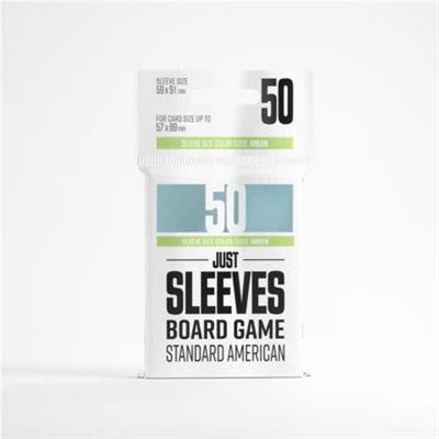 Our answer to entry-level sleeves. Just Sleeves – Standard American-Sized are a cost-effective option designed to protect board game cards.Measuring 62 × 94 mm, these sleeves perfectly fit games with Standard American size cards. This size also matches the Gamegenic Prime line of green color sleeves.Each pack contains 50 sleeves.