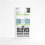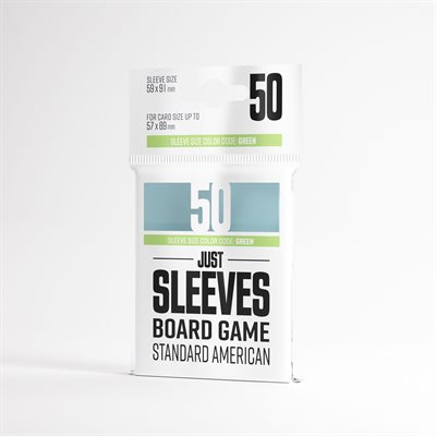 Our answer to entry-level sleeves. Just Sleeves – Standard American-Sized are a cost-effective option designed to protect board game cards.Measuring 62 × 94 mm, these sleeves perfectly fit games with Standard American size cards. This size also matches the Gamegenic Prime line of green color sleeves.Each pack contains 50 sleeves.