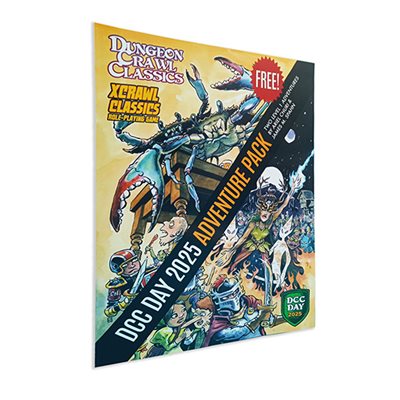 Included in the DCC 2025 kit as seen on the Goodman games website:Limited Edition Foil Sezrekan 7-Pointed Star Cover of DCC Core RulebookDCC Day #6: The Key to Castle WhiterockDCC Day 2025 Adventure PackLimited Edition Foil Softcover: DCC #108: The Seventh Thrall of SezrekanAufgebläht or Bust (Nedronomicon)Academia Arcana RPG PosterSunday Matinee Crawls: Karven Shaole, The Icy Realm of GiantsOrbital Intelligence #1All Roads Lead to Conquest!Silam Soup Construct Monster BookmarkVision of the Hobonomicon Bookmark