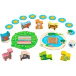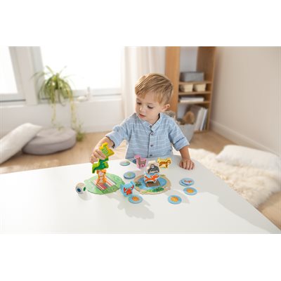 Things are getting wildly wobbly as the animals create a big stacking tower. Who will climb on whom? The die decides. But whether the animal stack stays standing or not is up to the players. They stack Animal upon Animal in three new games for young stackers. In the third game, they work cooperatively to race against the crab, training their dexterity skills with play. May the best stacker win!
