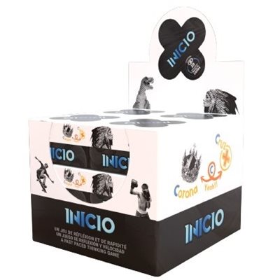 Inicio Mini is a fast-thinking game of about 15 minutes for 2 to 6 players. Form winning combinations by identifying objects that start with the same letter. Everyone plays at the same time. Players must announce two different words relating to two cards and beginning with the same letter. If a player comes up with a valid match, they take the 2 cards and form a scoring pile next to them. Any words describing what is visible in the image can be announced. Warning: a word already pronounced in the game is no longer valid for the rest of the game. When two piles of cards are empty, then count the cards present in your score pile. The player with the most cards is the winner.