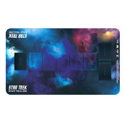 The STAR TREK: Star Realms Game Board Playmat is designed to enhance your gameplay experience, featuring designated spots for the Trade Row, as well as the Scrap and Trade piles, on a neoprene playmat with a rubber backing.