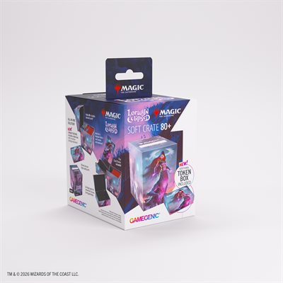 The Soft Crate is a durable all-in-one solution: the first 2-in-1 product that combines a full-size deck box with an integrated token box. This full-color printed deck box offers smart functionality and clever design. It holds up to 80 double-sleeved cards for standard formats, plus space for tokens and sideboard. Alternatively, it can fit up to 100 single-sleeved cards. The additional included token box stores dice, counters, and other small accessories.Equipped with a unique smart click-lock mechanism, the token box keeps everything securely stored. When opened, its lid remains upright for quick and easy access during play.