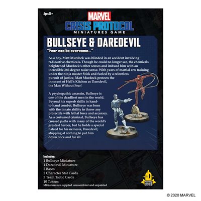 A psychopathic assassin, Bullseye is one of the deadliest men in the world. Beyond his superb skills in hand-to-hand combat, Bullseye was born with the innate ability to throw any projectile with lethal force and accuracy. As a costumed criminal, Bullseye has crossed paths with many of the world’s greatest heroes, but he holds a special hatred for his nemesis, Daredevil, stopping at nothing to put him down once and for all.