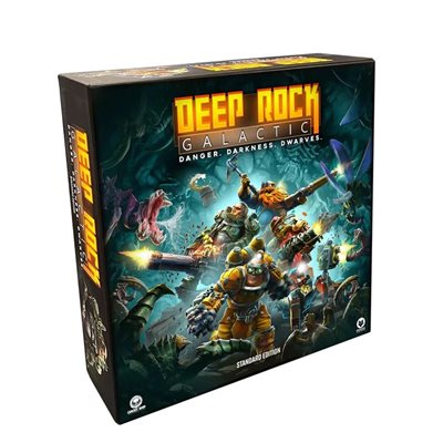 In Deep Rock Galactic: The Board Game, an authorized tabletop game adaption of the popular computer game, players take the roles of up to four dwarf miners in space: the Scout, the Engineer, the Gunner, and the Driller. Players must work together to mine precious minerals deep below the surface of a hostile planet where indigenous insectoid predators — the Glyphids — await, aggressively defending their caves against the intruders. Will your team be able to meet the mineral quota set by the company, or will you all end up as dinner for the Glyphids? Players move around the board while throwing dice to fight monsters and mine rare minerals in order to escape in time with the required amount of minerals needed to win the current mission.