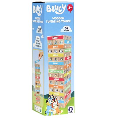 Looking for a fun game that promises endless thrills? Check out the Bluey Tower Adventure! With 54 colorful wooden blocks featuring Bluey and Friends, this stackable set is perfect for non-stop playtime with family and friends. Build focus and strategic thinking while having a blast! Every game becomes a battle of wits and skills where little ones learn to make quick decisions while having tons of fun. Plus, feel good about playtime with these non-toxic, earth-friendly blocks crafted from responsibly sourced, FSC-certified durable materials. Get ready for a block bash that's sure to bring smiles and joy to everyone!