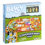 It's almost time for bed, but Bluey and her friends want to play a game of Scavenger Hunt. The Bluey Scavenger Hunt Game is all about finding, playing, and collecting. Players must work together as a team to find 12 toy tokens. Collect all 12 toy tokens to win! This fun game is full of fun activities to perform, fun things to find, and fun questions about Bluey to answer. Included in this awesome game are 4 exclusive Mini-Figures - Bluey, Bingo, Bandit and Chilli. They make the perfect playing pieces to move around the board and collect tokens. Also included is a colorful Game Board, 15 Find Cards, 15 Play Cards, 15 Surprise Cards, 15 Think Cards, 12 Toy Tokens, 1 time token, 1 die, and 1 sand timer.