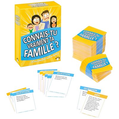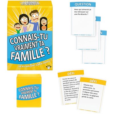 "Do You Really Know Your Family?" You'll find out when you and your family get together and play this easy and fun card game! See who really knows the family best as you answer fun trivia questions about each other! Create hilarious family memories as you perform and complete silly challenges together to be the first player to collect 15 game cards! "Do You Really Know Your Family?" is the perfect game for families with kids ages 8 and up, teens and adults. So easy to learn and play, "Do You Really Know Your Family?" contains 2 sets of playing cards - Trivia and Challenge. Draw a Trivia Card and read the question about yourself out loud. The first person to guess the answer you are thinking of wins the card! Challenge Cards have silly and fun challenges and games for the family to perform together. Complete the challenge and score another card! Share the laughs as you all learn things about each other that you never knew! It's wholesome fun for everyone. "Do You Really Know Your Family?" is an ideal game for family game night as well as making a great party game. With 200 different cards in the box, there's plenty to learn about everybody and heaps of silly challenges to perform.