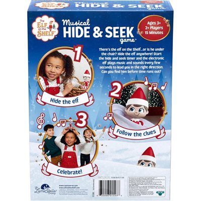 Is the elf hiding here? Perhaps over there? The Elf on the Shelf can hide anywhere! The Elf on the Shelf® Musical Hide & Seek Game allows your little ones to play hide-and-seek with this adorable, interactive 6" /15CM electronic-figure version of Santa's official Scout Elf. Start the hide-and-seek timer on the Scout Elf's peppermint base and then hide him in the sneakiest place! The Scout Elf plays music and sounds every few seconds, leading the seekers in the right direction. Will the seekers find the Scout Elf before time runs out? When the seekers find the Scout Elf, they'll press the snowflake button to go into "Dance Mode" so everyone can celebrate their win! Makes a great festive season party game or festive family game for 2 or more players, ages 3+.