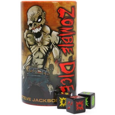 Zombie Dice is fast and easy for any zombie fan (or the whole zombie family). The 13 custom dice are your victims. Push your luck to eat their brains, but stop rolling before the shotgun blasts end your turn!